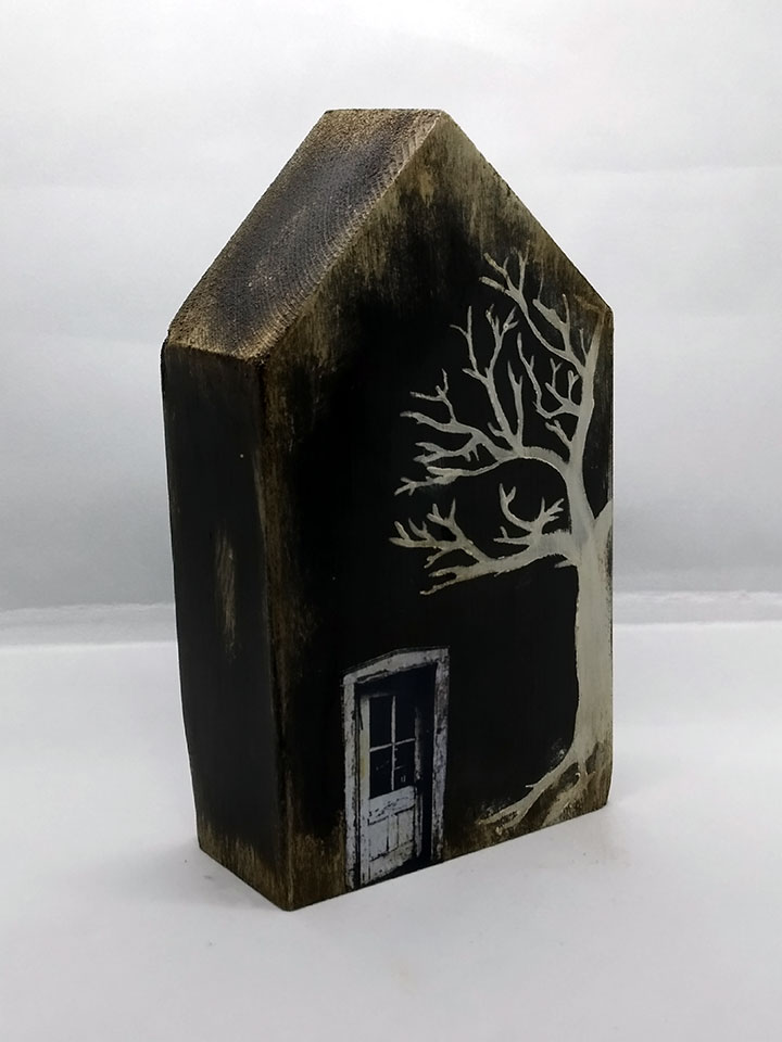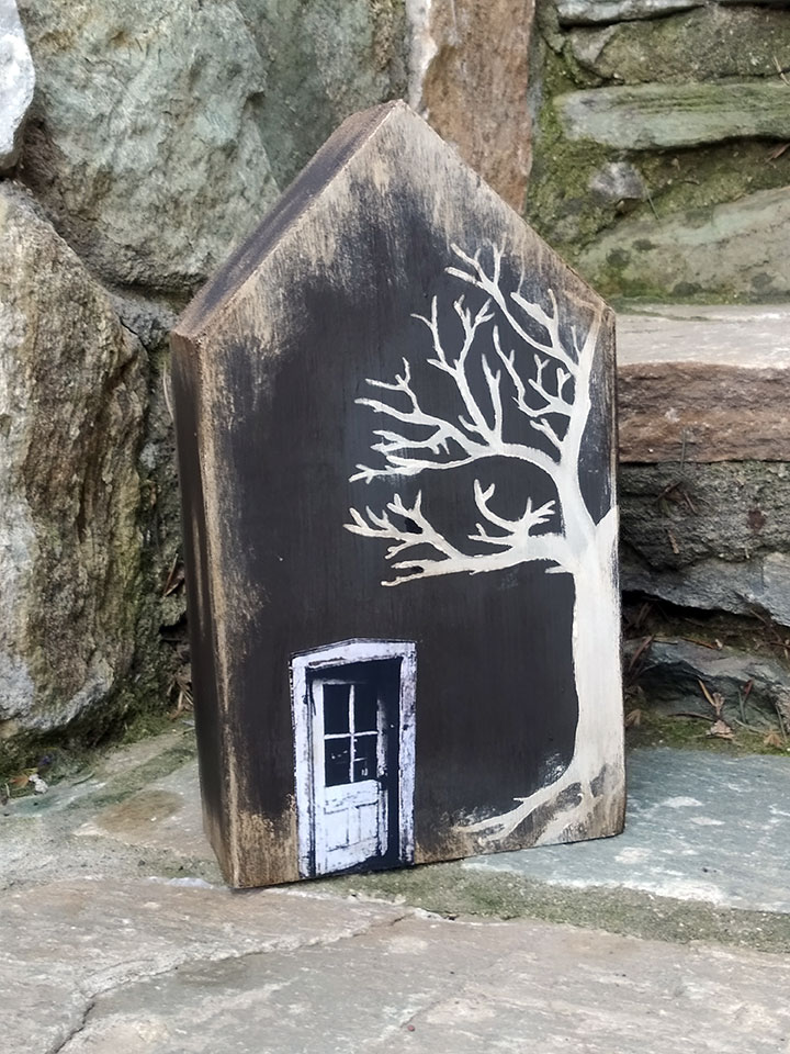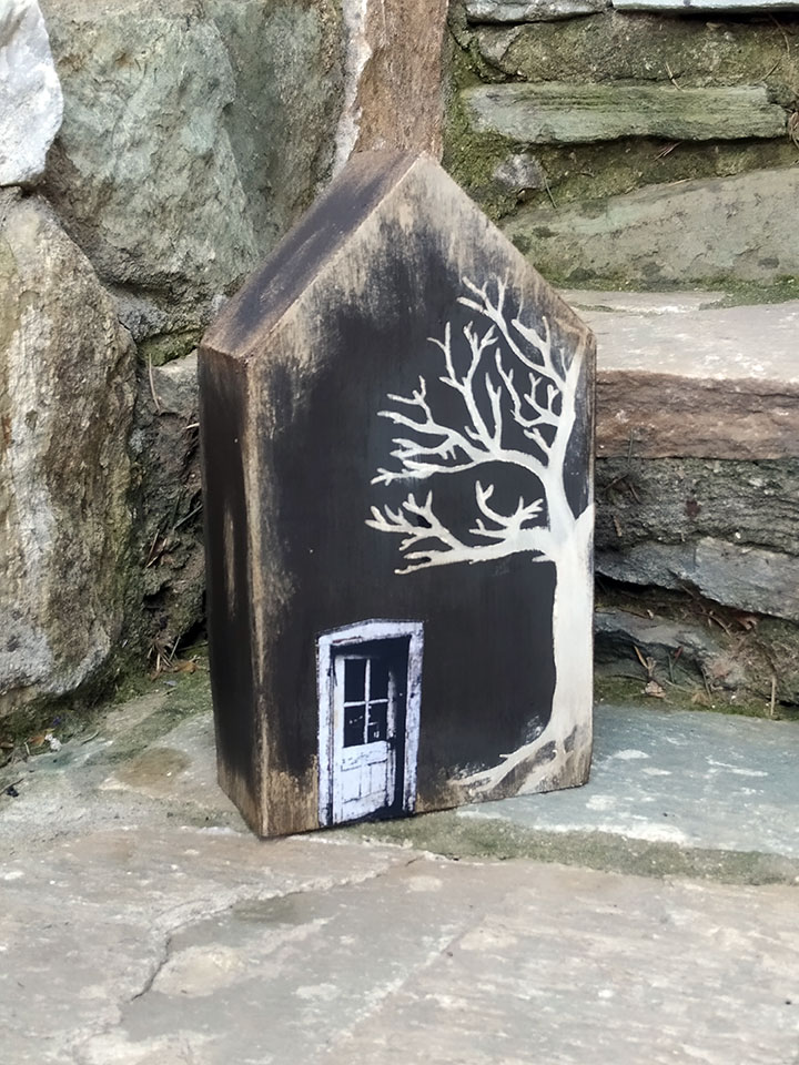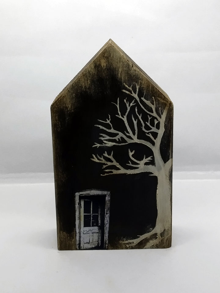 Χειροποίητο διακοσμητικό σπιτάκι από μασίφ ξύλο ελάτης αποτυπώνοντας μία εικόνα μυστηρίου έχοντας ανοικτή την πόρτα ενός σπιτιού, με στοιχεία παλαίωσης. Ένα χειροποίητο διακοσμητικό που μπορεί να διακοσμήσει τα ράφια και την τραπεζαρία σας καθώς και να χρησιμοποιηθεί και σαν βιβλιοστάτης, προσθέτοντας ένα διαφορετικό ύφος στο χώρο σας. Ιδανικό για ένα διαφορετικό εκλεκτισμένο δώρο για τα αγαπημένα σας πρόσωπα καθώς και για την καλόγουστη διακοσμητική του σπιτιού σας. Διάσταση 21 Χ12 εκ.